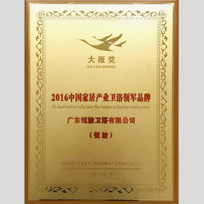 奖 项:大雁奖 2016中国家居产业卫浴领军品牌