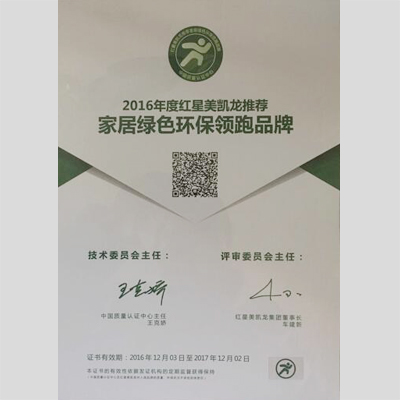 奖 项:2016年度红星美凯龙推荐家居绿色环保领跑品牌