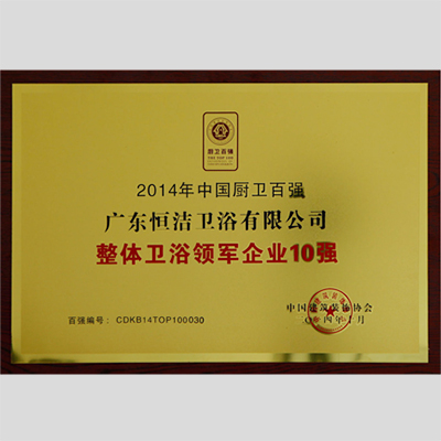 奖 项:2014厨卫百强-整体卫浴领军企业10强品牌
