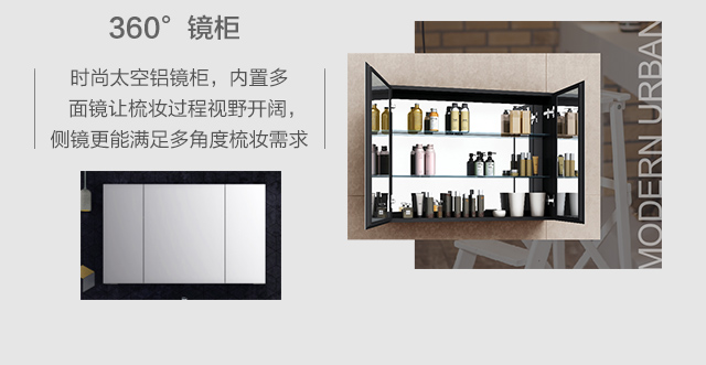 时尚太空铝镜柜,内置多面镜让梳妆过程视野开阔,侧镜更能满足多角度梳妆需求