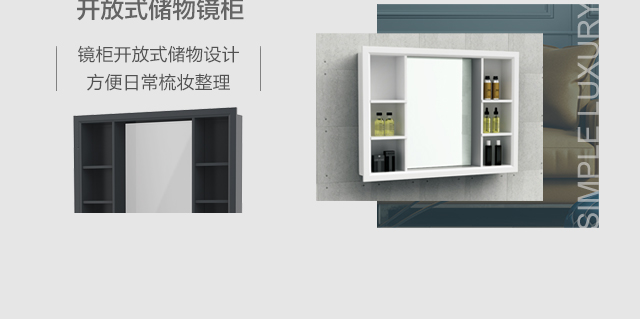镜柜开放式储物设计,方便日常梳妆整理
