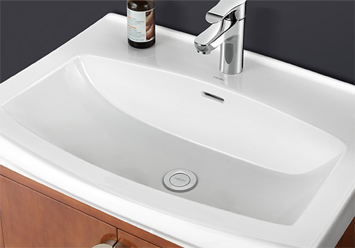 采用现代的木纹,简约的线条设计,同时搭配新款中边盆,整体档次提升明显