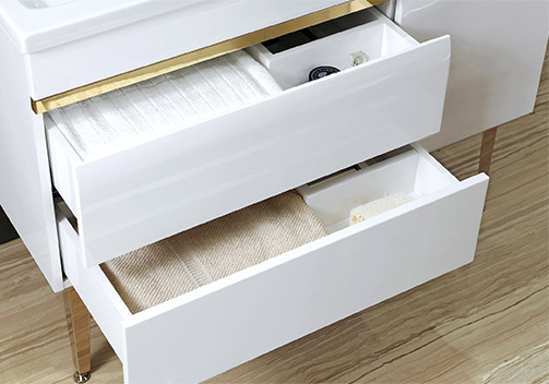 产品外观采用极致简约的设计风格,搭配金色五金配件,尊贵大方,让您尽享金致生活